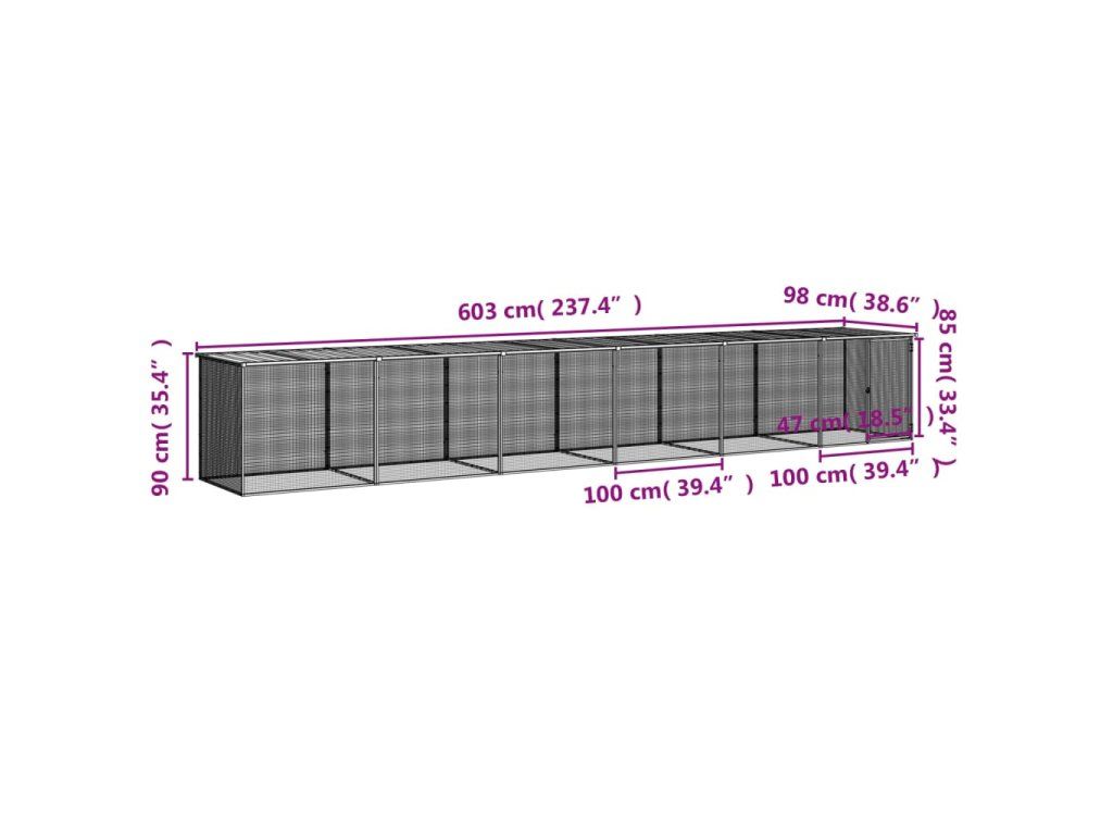 vidaXL Klietka pre kurčatá strecha bledosivá 603x98x90 cm poz. oceľ