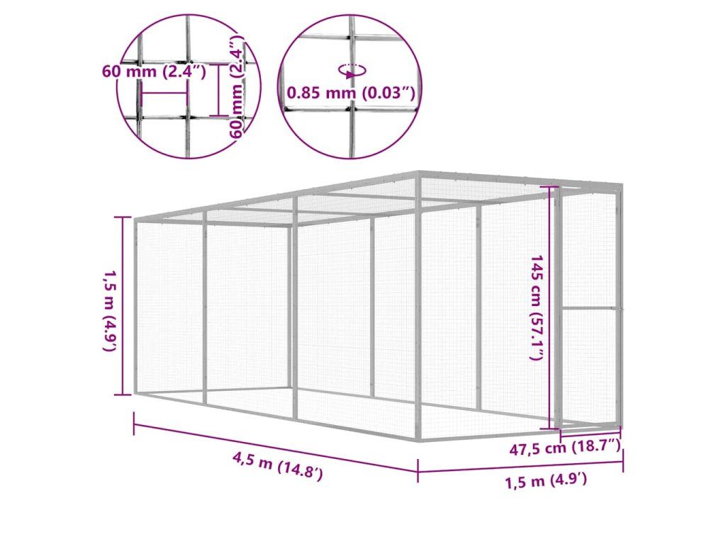 vidaXL Klietka pre mačky 4,5x1,5x1,5 m, pozinkovaná oceľ