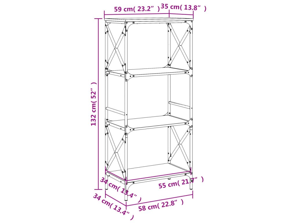 vidaXL Knižnica, 4 police, tmavý dub 59x35x132 cm, kompozitné drevo