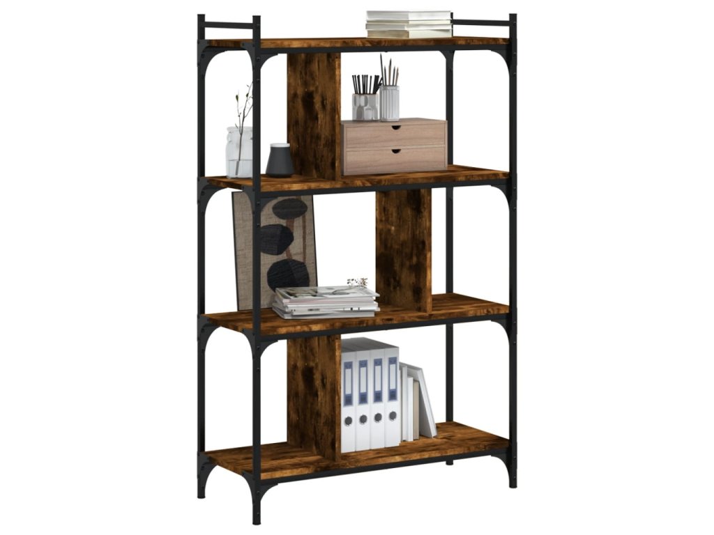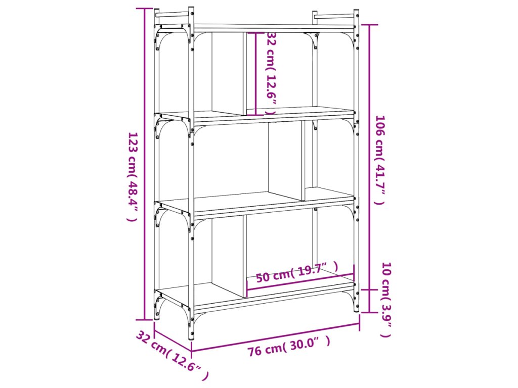 vidaXL Knižnica 4-poschodová dymový dub 76x32x123 cm kompozitné drevo