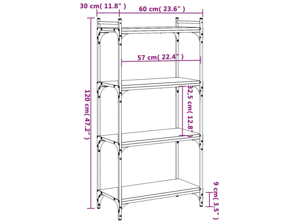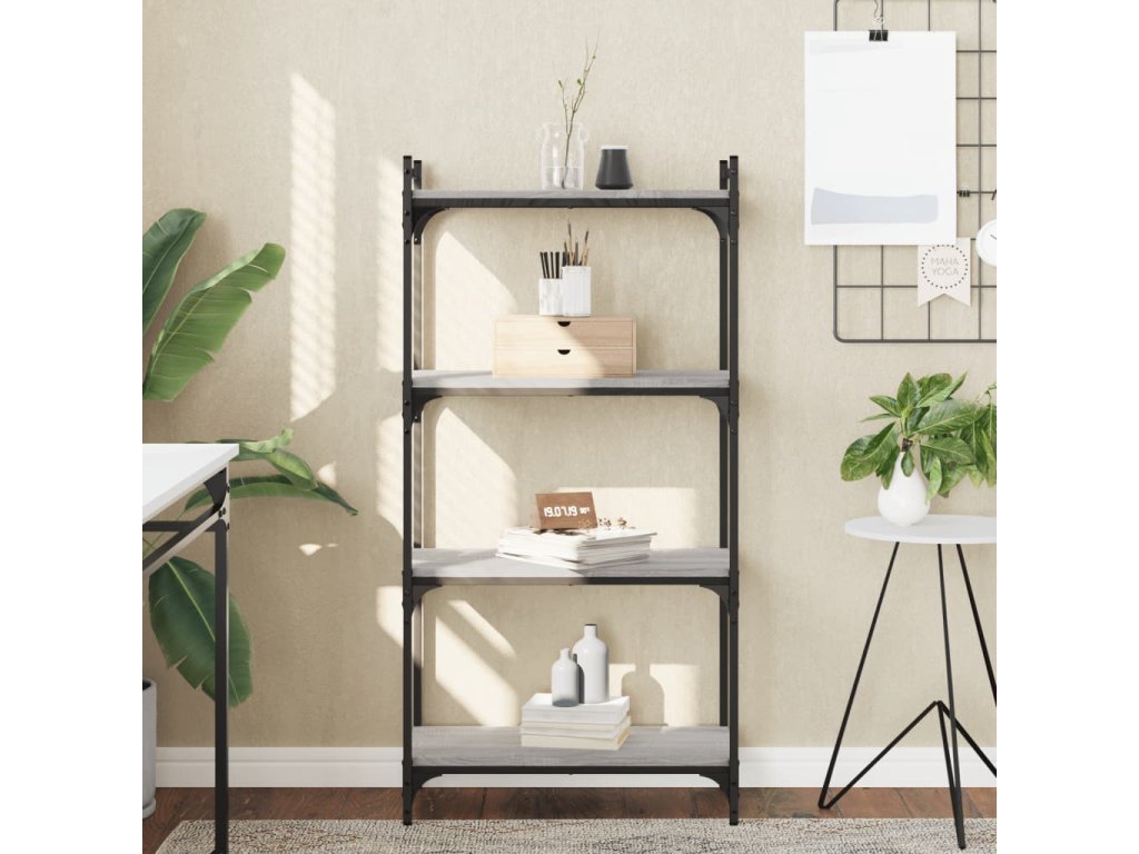 vidaXL Knižnica 4-poschodová sivá sonoma 60x30x120 cm kompozitné drevo