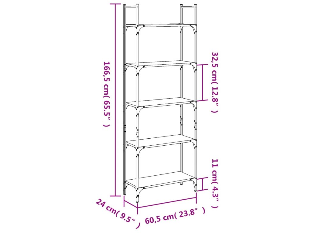 vidaXL Knižnica 5-poschodová hnedý dub 60,5x24x166,5 cm kompoz. drevo