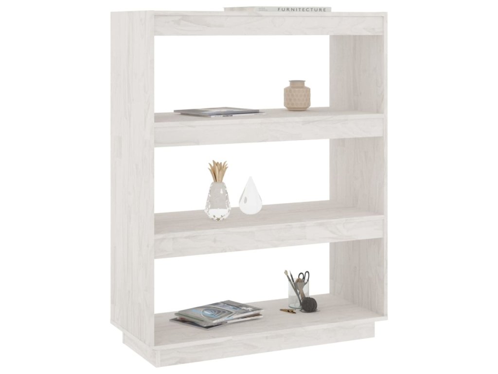 vidaXL Knižnica/deliaca stena biela 80x35x103 cm masívna borovica