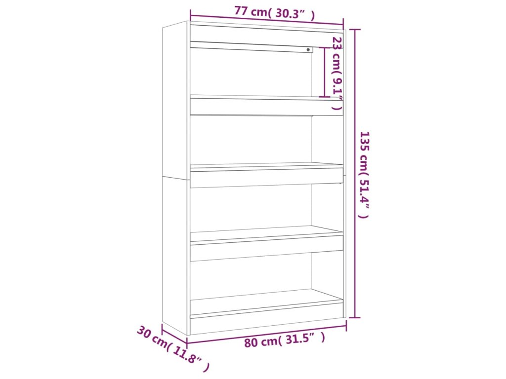 vidaXL Knižnica/deliaca stena tmavý dub 80x30x135 cm drevotrieska