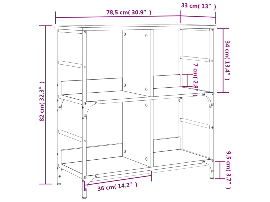 vidaXL Knižnica dymový dub 78,5x33x82 cm kompozitné drevo