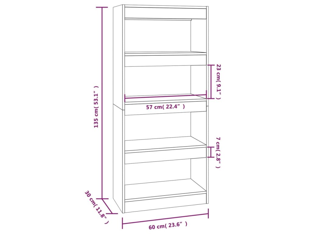 vidaXL Knižnica/rozdelovač tmavý dub 60x30x135 cm spracované drevo