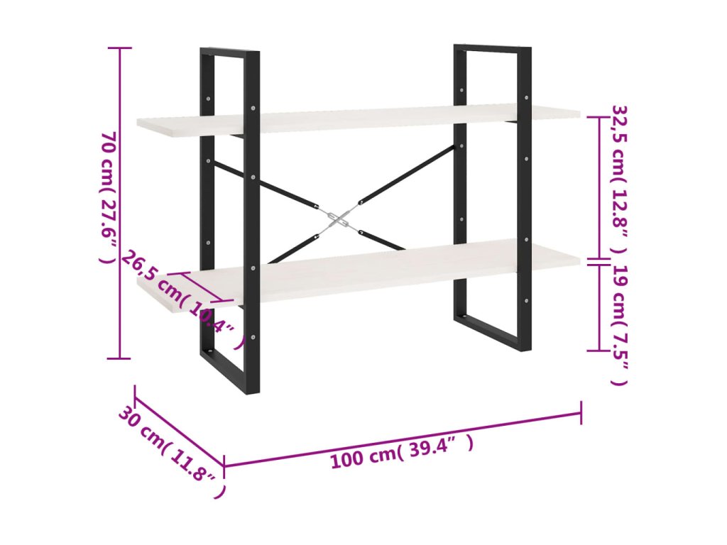 vidaXL Knižnica s 2 policami biela 100x30x70 cm masívna borovica