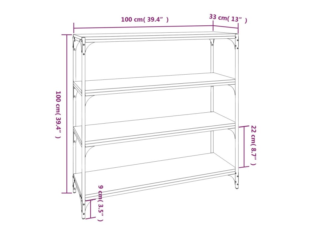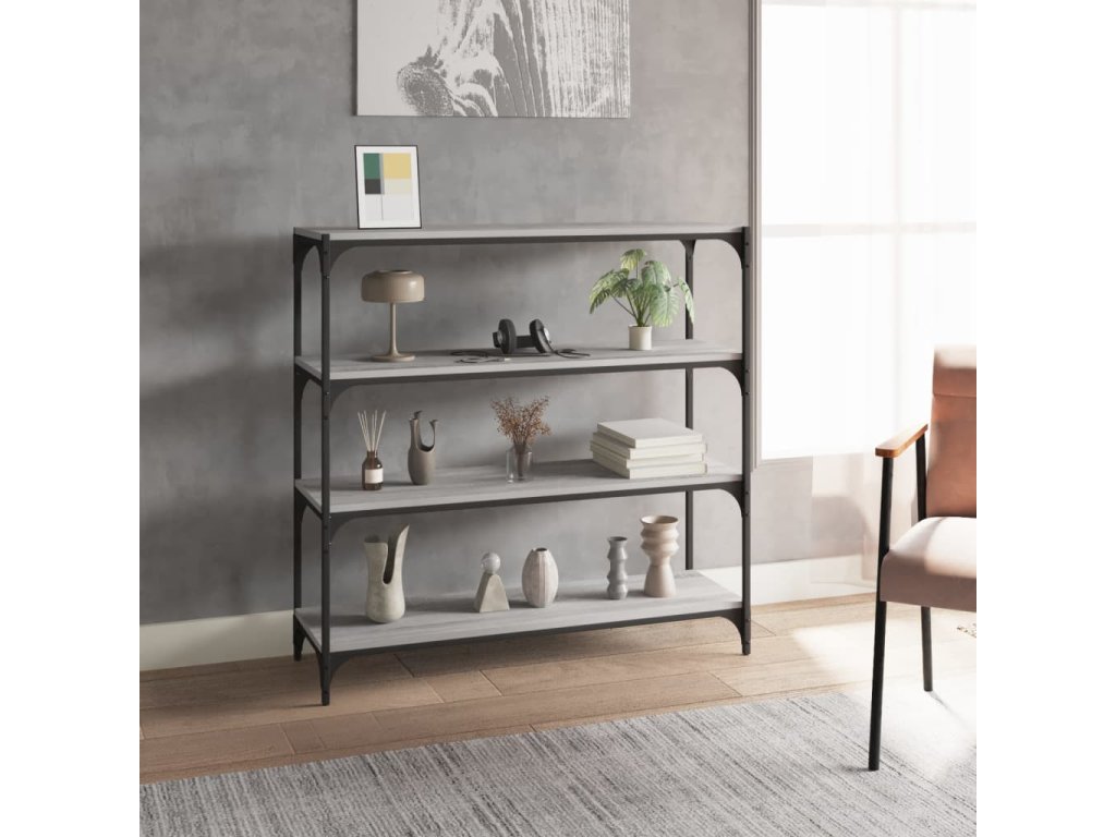 vidaXL Knižnica sivý dub sonoma 100x33x100 cm spracované drevo a oceľ