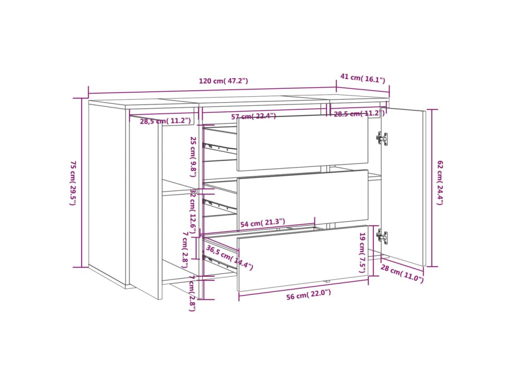 vidaXL Komoda, 3 zásuvky, čierna 120x41x75 cm, kompozitné drevo