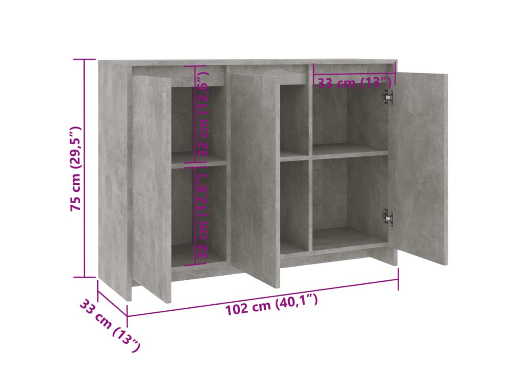 vidaXL Komoda, betónovo sivá 102x33x75 cm, kompozitné drevo