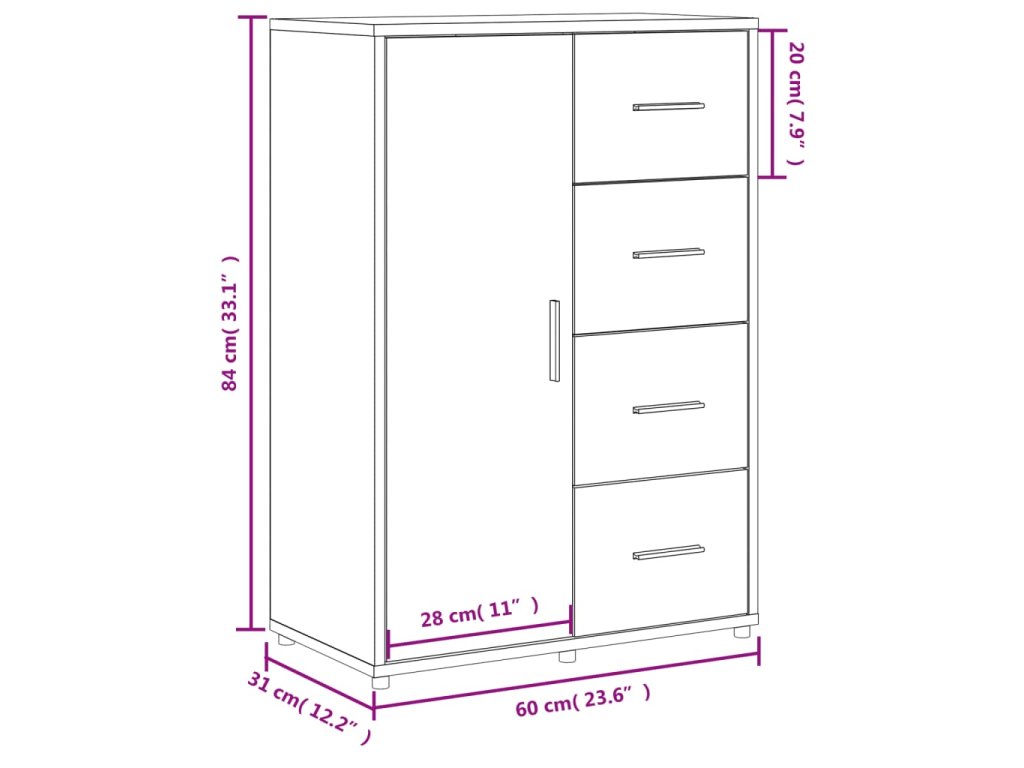 vidaXL Komoda, betónovo sivá 60x31x84 cm, kompozitné drevo