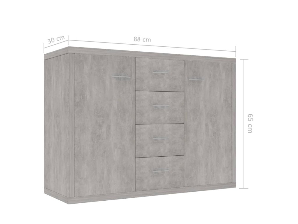 vidaXL Komoda, betónovo sivá 88x30x65 cm, kompozitné drevo
