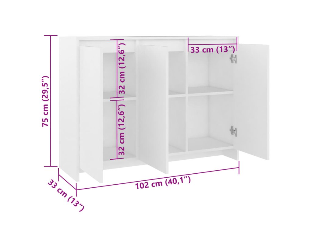 vidaXL Komoda, biela 102x33x75 cm, kompozitné drevo