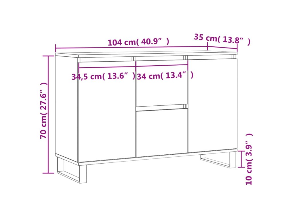 - Železné nohy: Železné nohy bočnej skrinky zaisťujú pevnosť a stabilitu.