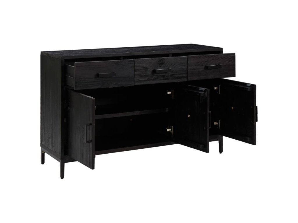 - Masívne recyklované borovicové drevo: Skrinka je vyrobená z recyklovaného masívneho borovicového dreva, ktoré má drsné hrany, chyby a škrabance, čo mu dodáva vintage priemyselný vzhľad.