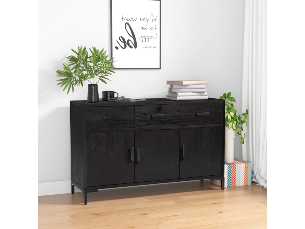 vidaXL Komoda, čierna 110x35x70 cm, borovicový masív
