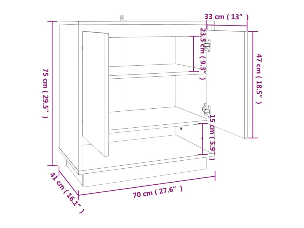 Bočná skrinka s dvierkami a priehradkami poskytne dostatok úložného priestoru, aby ste mali svoje veci usporiadané a na dosah ruky. Pevná stolová doska je ideálna na vystavenie dekoratívnych predmetov, fotorámikov a rastlín v črepníkoch. Okrem toho sa odkladacia skrinka ľahko čistí vlhkou handričkou.