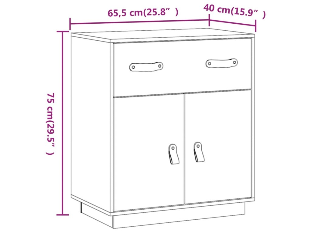 - Masívne borovicové drevo: Táto bočná skrinka je vyrobená z masívneho borovicového dreva. Masívne borovicové drevo je krásny prírodný materiál. Borovicové drevo má rovnú štruktúru a uzly dodávajú materiálu jeho typický rustikálny vzhľad.