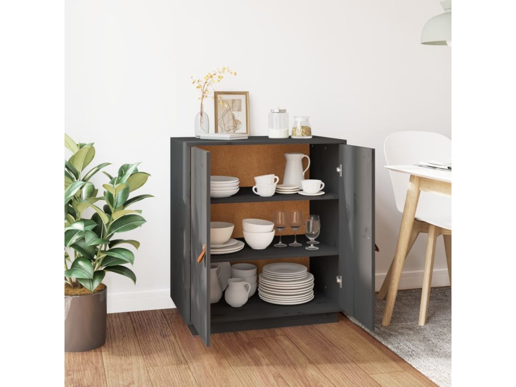 vidaXL Komoda, sivá 65,5x40x75 cm, borovicový masív
