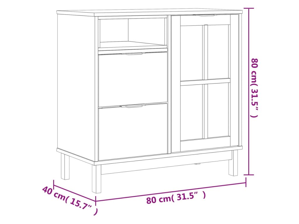 vidaXL Komoda, sklenené dvierka FLAM 80x40x80 cm, borovicový masív