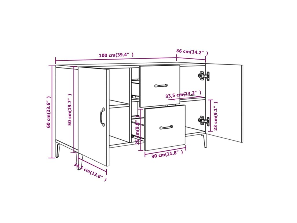 - Dostatok úložného priestoru: Bočná skrinka má 2 dvierka a 2 zásuvky, ktoré poskytujú dostatok úložného priestoru na uchovávanie rôznych potrieb dobre organizovaných a na dosah ruky. Horná časť tejto skrinky je skvelá na vystavenie vašich okrasných predmetov.