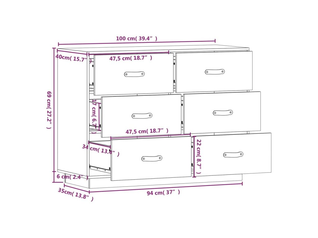 - Dostatok úložného priestoru: Komoda má 6 zásuviek a poskytuje dostatok priestoru, aby ste mali svoje veci usporiadané a na dosah ruky.