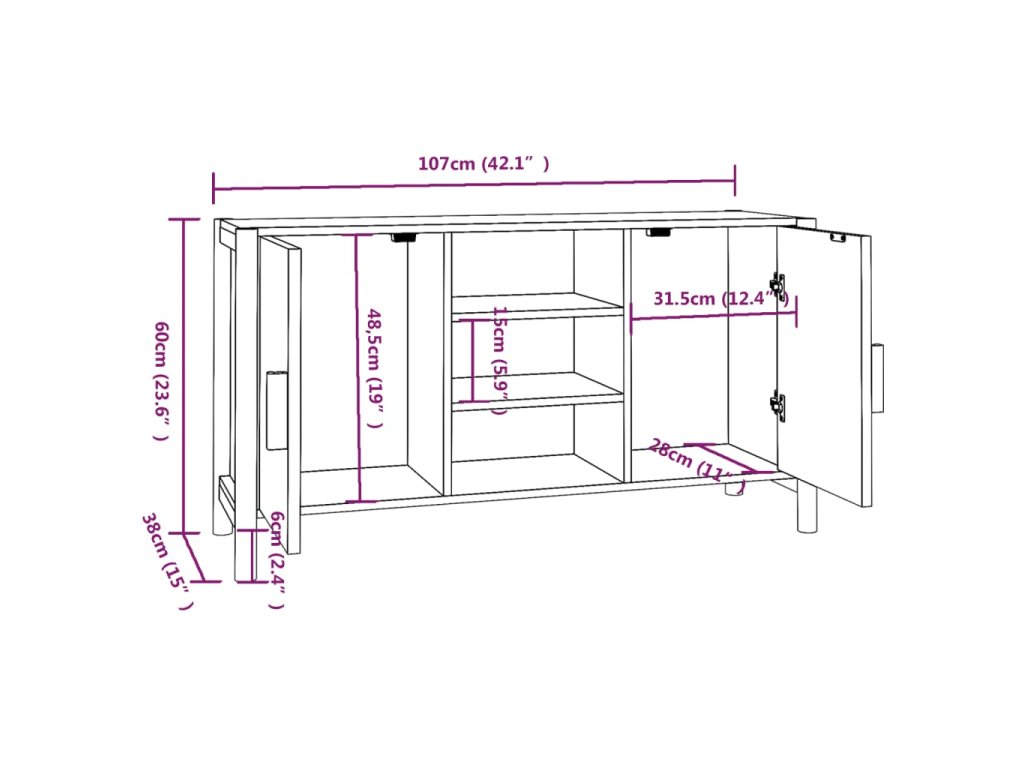 - Rozmery: 107 x 38 x 60 cm (Š x H x V)