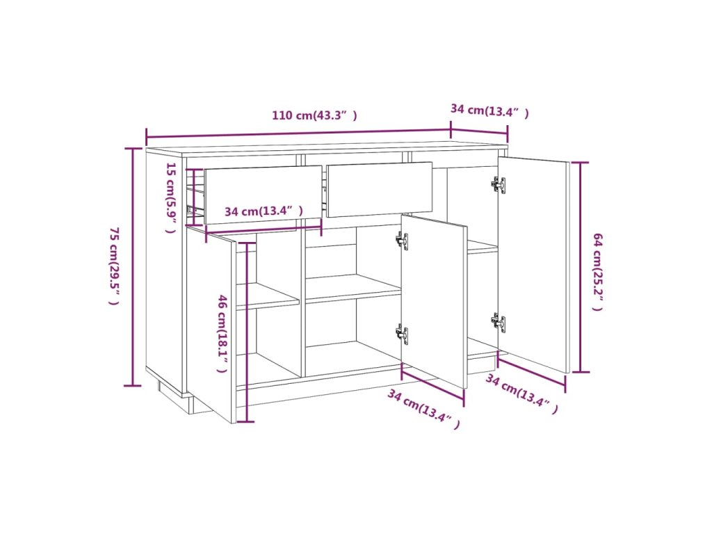 - Dostatok úložného priestoru: Skrinka vybavená 2 zásuvkami a 3 dvierkami ponúka dostatok úložného priestoru na uskladnenie rôznych každodenných potrieb dobre organizovaných a na dosah ruky.