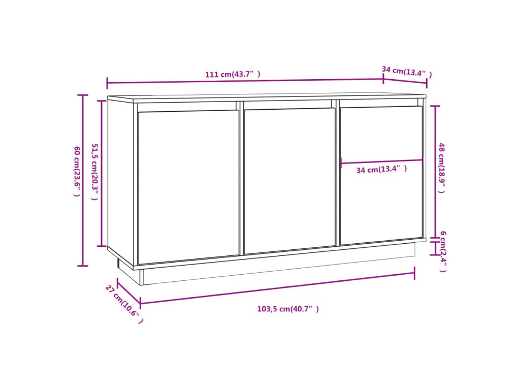 vidaXL Komoda 111x34x75 cm borovicový masív