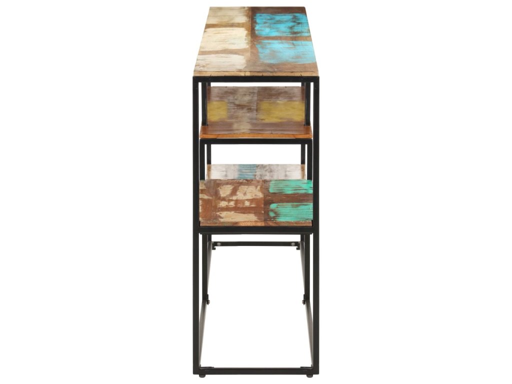 Skrinka je vyrobená z masívneho regenerovaného dreva. Môže pozostávať z rôznych druhov drevín, ako je teak, tvrdé drevo, tropické drevo, mangovníkové drevo atď. To znamená, že regenerované drevo si zachováva vlastnosti týchto rôznych druhov dreva a každý kus tohto nábytku je jedinečný a odlišný od ostatných kusov. Polica má dostatočnú pevnosť a ľahko sa čistí. Oceľový rám s práškovou povrchovou úpravou prispieva k priemyselnému šarmu. Táto industriálna skrinka s niekoľkými otvorenými priehradkami poskytuje dostatok miesta na uloženie alebo vystavenie vašich kvetín, košov s občerstvením, kníh, ocenení atď.