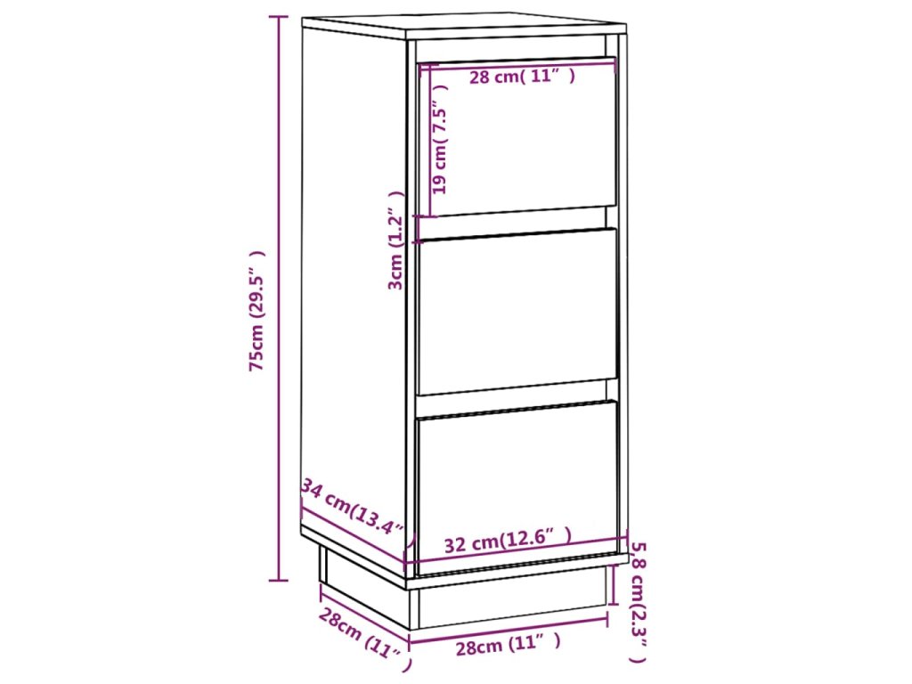 vidaXL Komoda 32x34x75 cm borovicový masív