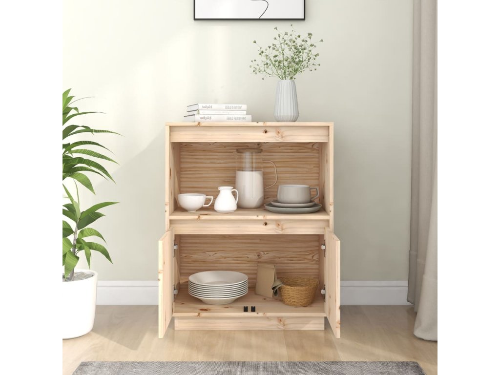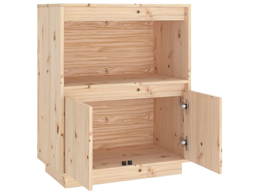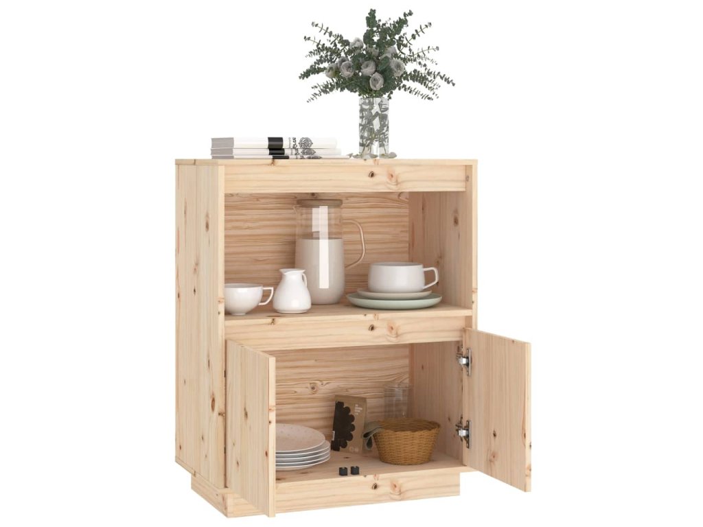 Úložná skrinka je vyrobená z masívneho borovicového dreva, vďaka čomu je stabilná a pevná. Bočná skrinka poskytne dostatok úložného priestoru pre knihy, multimediálne zariadenia a iné predmety. Pevná doska je ideálna na vystavenie dekoratívnych predmetov, fotorámikov a rastlín v črepníkoch.