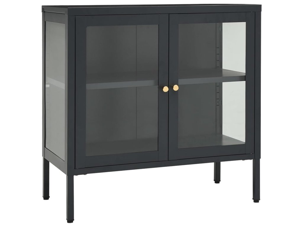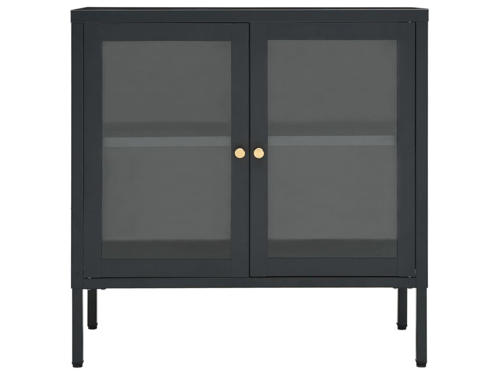 vidaXL Komoda antracitová 70x35x70 cm oceľ a sklo