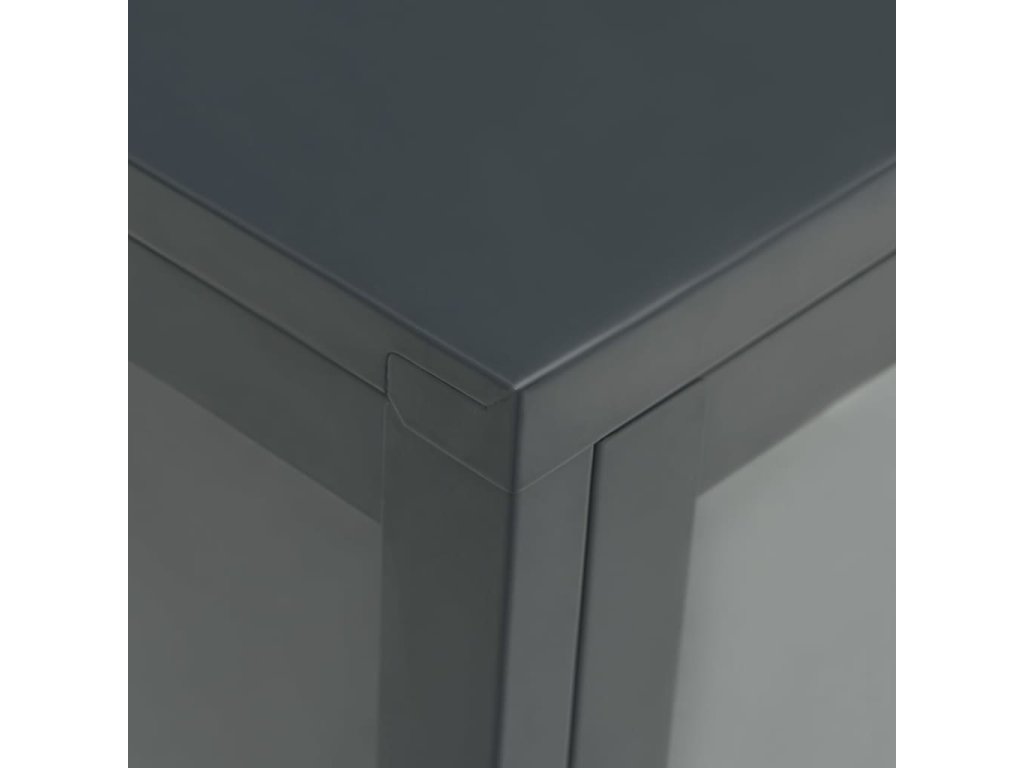 Konštrukcia tejto komody je vyrobená z ocele. Je pevná a odolná, čo zaručuje roky používania. Komoda má v sklenených dvierkach priehradku, ktorá ponúka dostatok úložného priestoru na uloženie a vystavenie vašich kníh, časopisov, DVD, váz a iných dekoratívnych predmetov, ktoré budú dobre usporiadané a na dosah ruky. Policu je možné nainštalovať do rôznej úrovne, aby sa zmenila veľkosť úložného priestoru. Nohy sa dajú ľahko nastaviť na požadovanú výšku a pomáhajú skrinke udržať stabilitu. Skrinka sa ľahko čistí vlhkou handričkou.