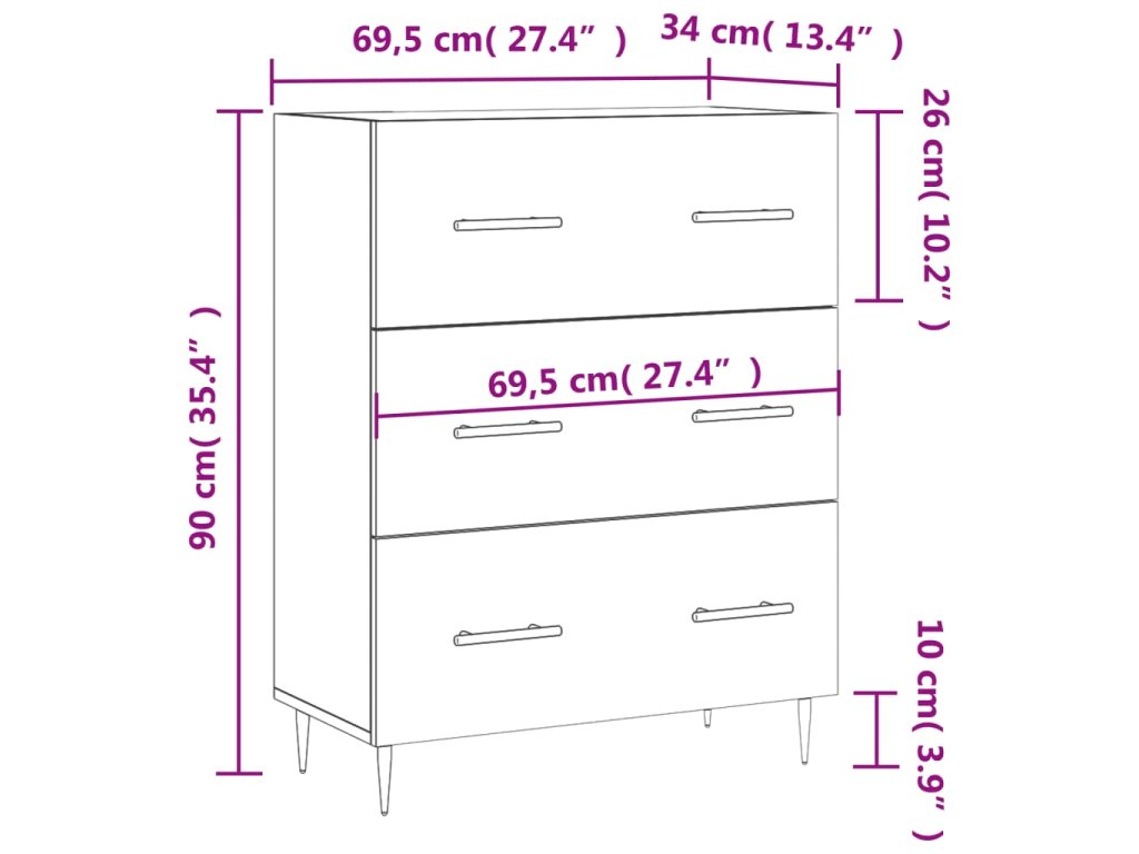 - Rozmery: 69,5 x 34 x 90 cm (Š x H x V)