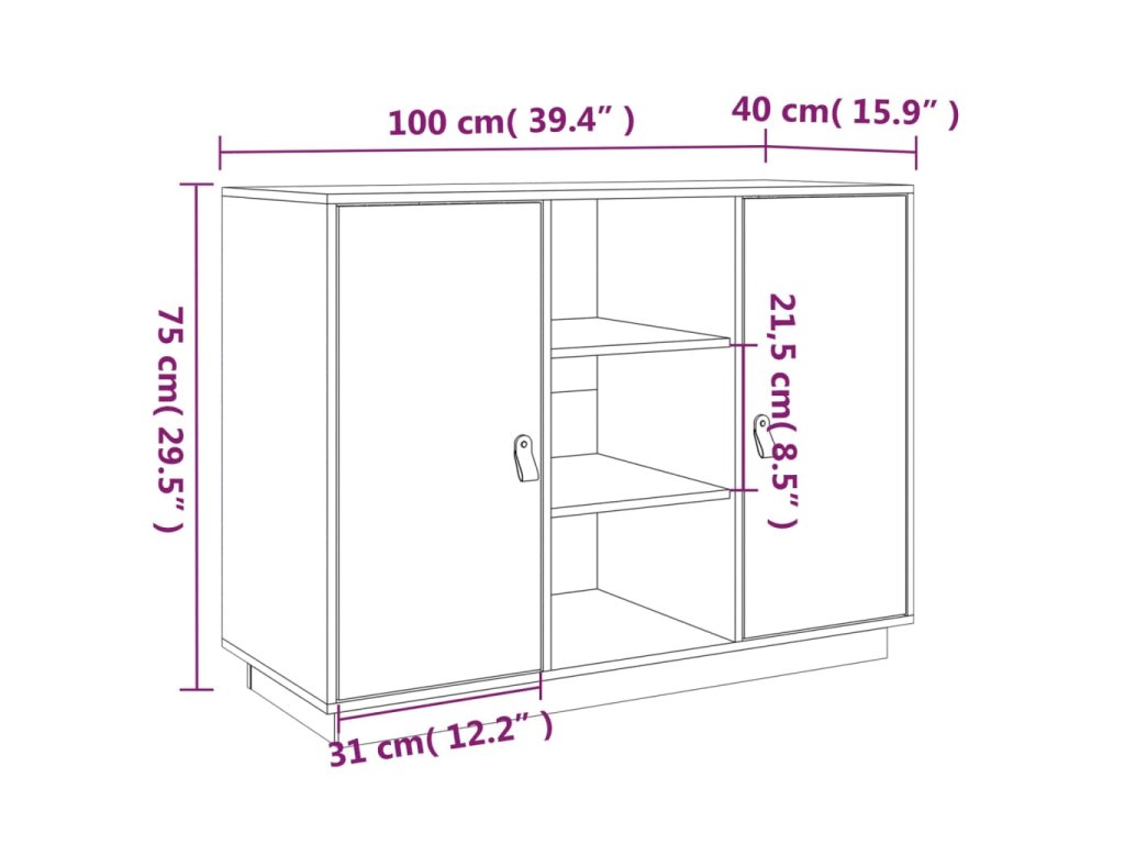 vidaXL Komoda biela 100x40x75 cm borovicový masív