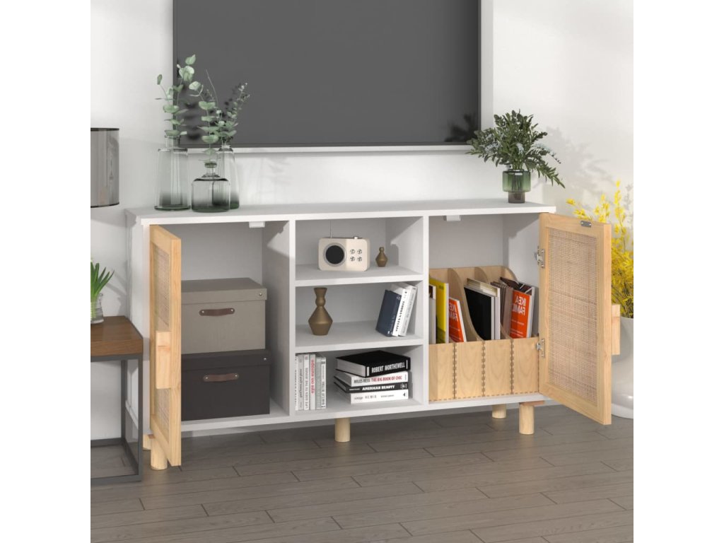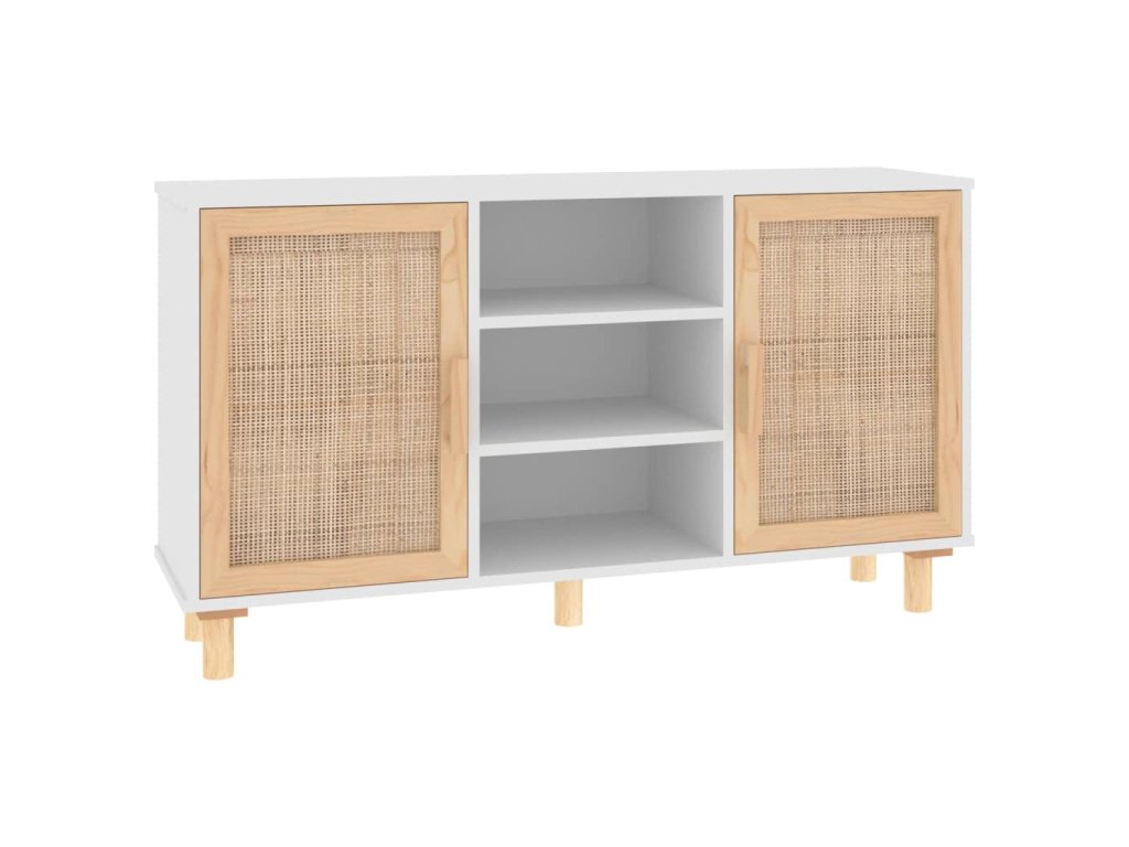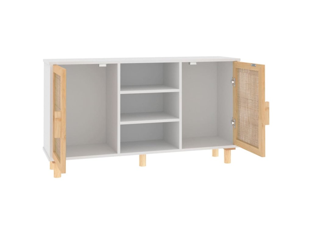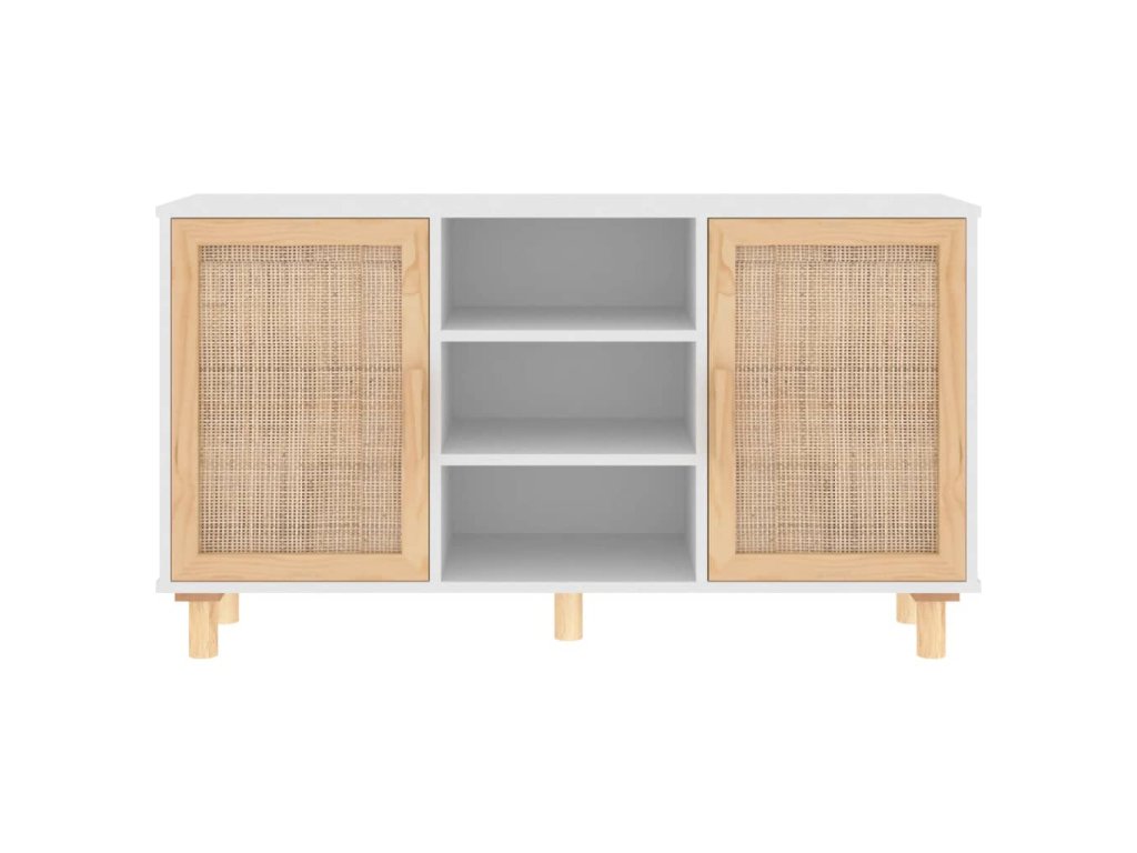 vidaXL Komoda biela 105x30x60 cm masívna borovica a prírodný ratan