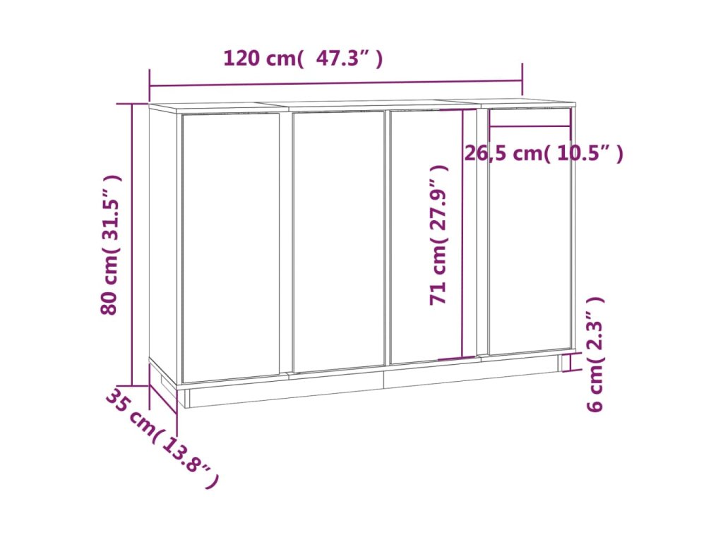 - Rozmery: 120 x 35 x 80 cm (Š x H x V)