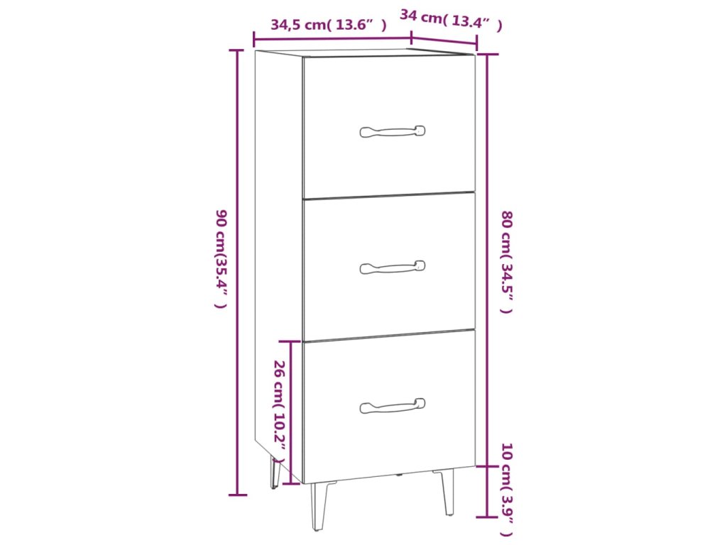 vidaXL Komoda biela 34,5x34x90 cm spracované drevo