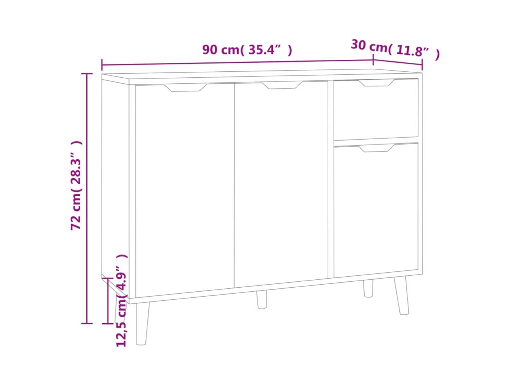 vidaXL Komoda biela a dub sonoma 90x30x72 cm drevotrieska