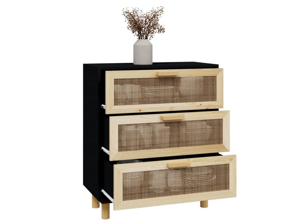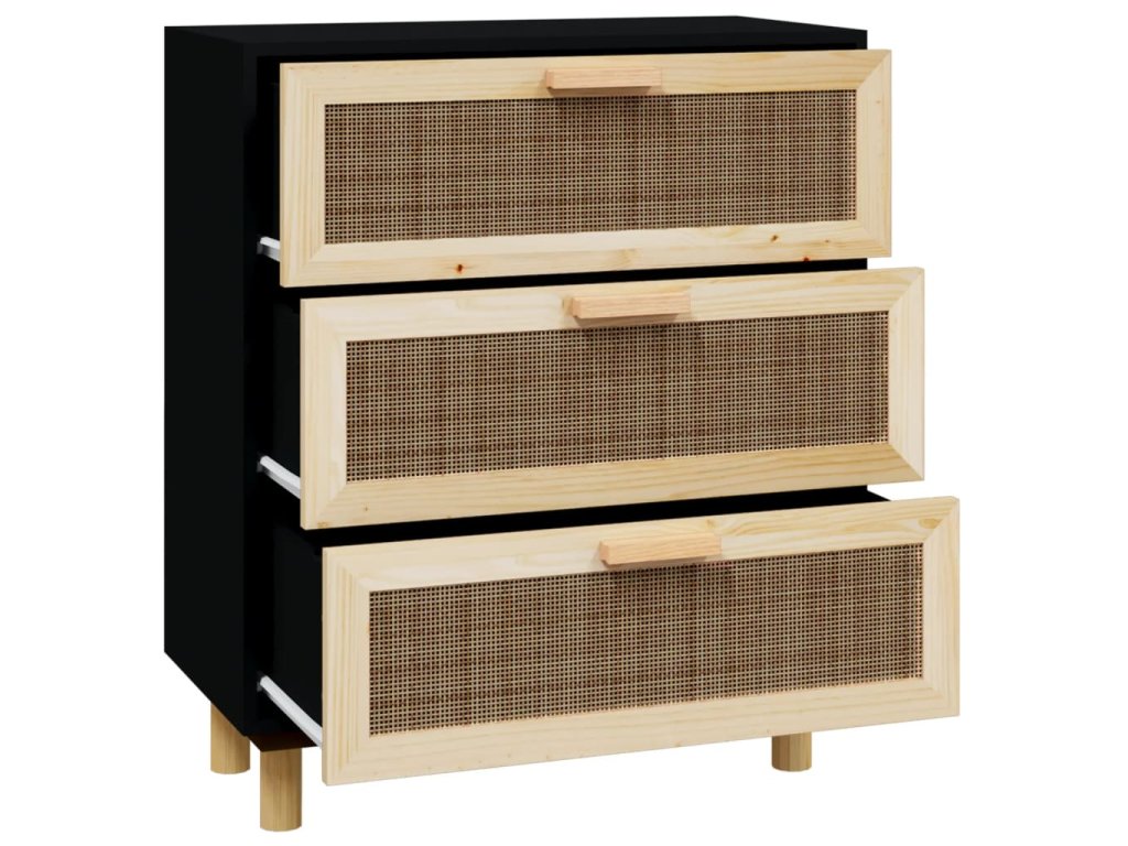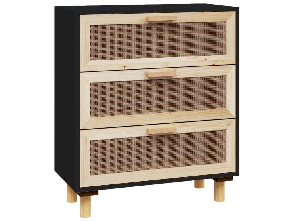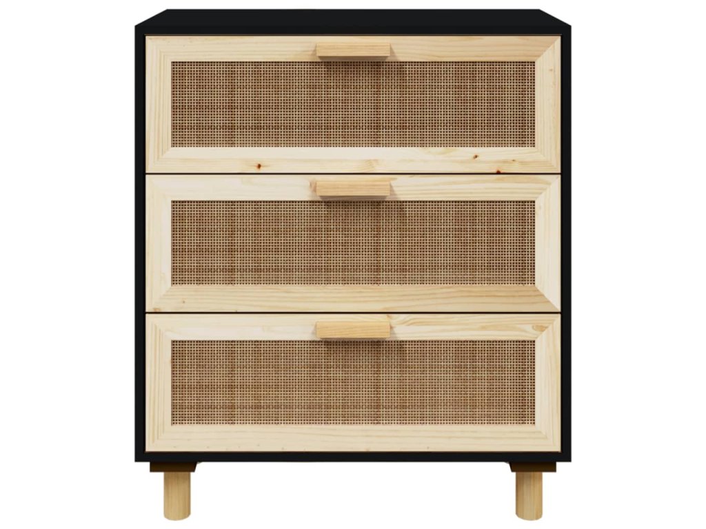 vidaXL Komoda čierna 60x30x70 cm masívna borovica a prírodný ratan