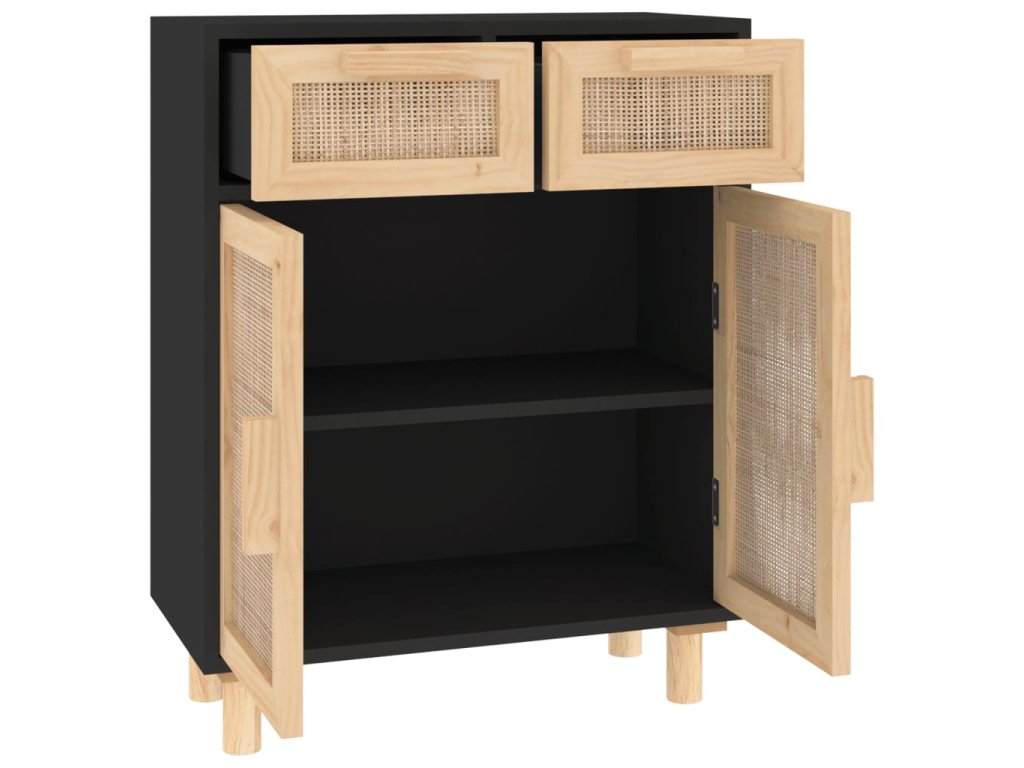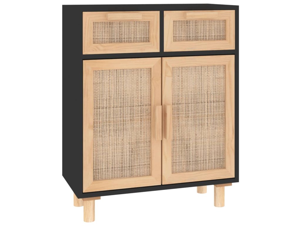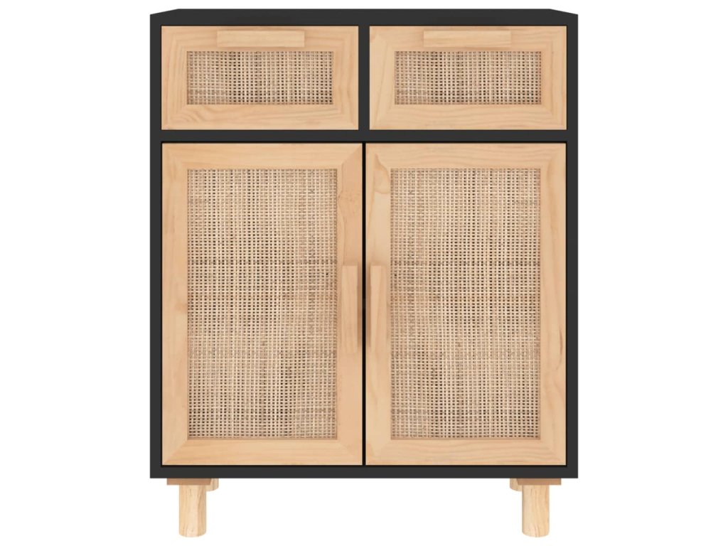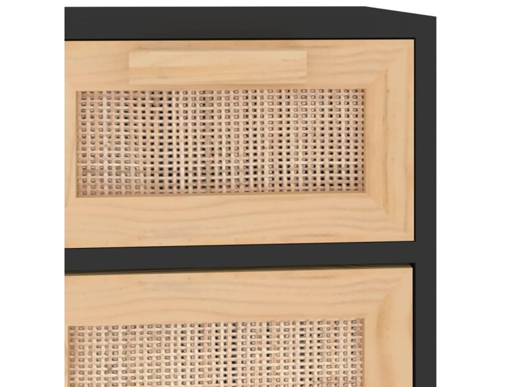 vidaXL Komoda čierna 60x30x75 cm masívna borovica a prírodný ratan