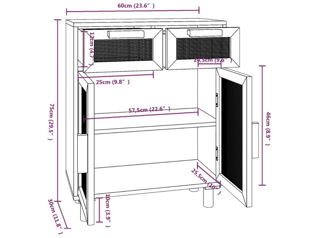 - Vnútorné rozmery skrinky: 57,5 x 25,5 x 46 cm (Š x H x V)