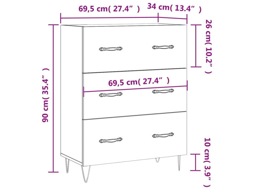 - Rozmery: 69,5 x 34 x 90 cm (Š x H x V)