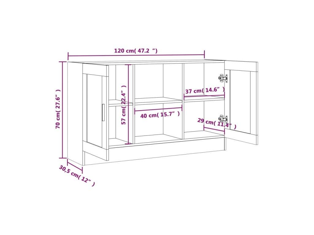 - Rozmery: 120 x 30,5 x 70 cm (Š x H x V)