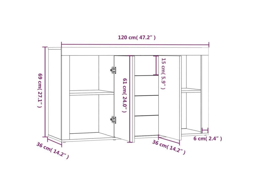 - Rozmery: 120 x 36 x 69 cm (Š x H x V)