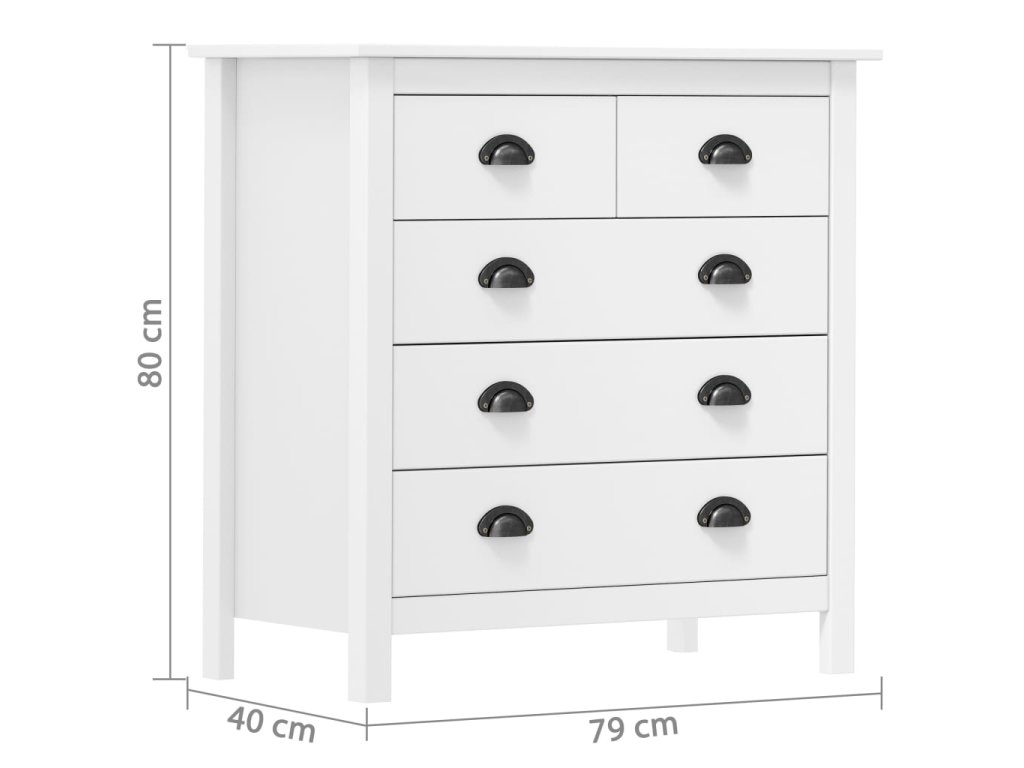 vidaXL Komoda Hill, biela 79x40x80 cm, borovicový masív