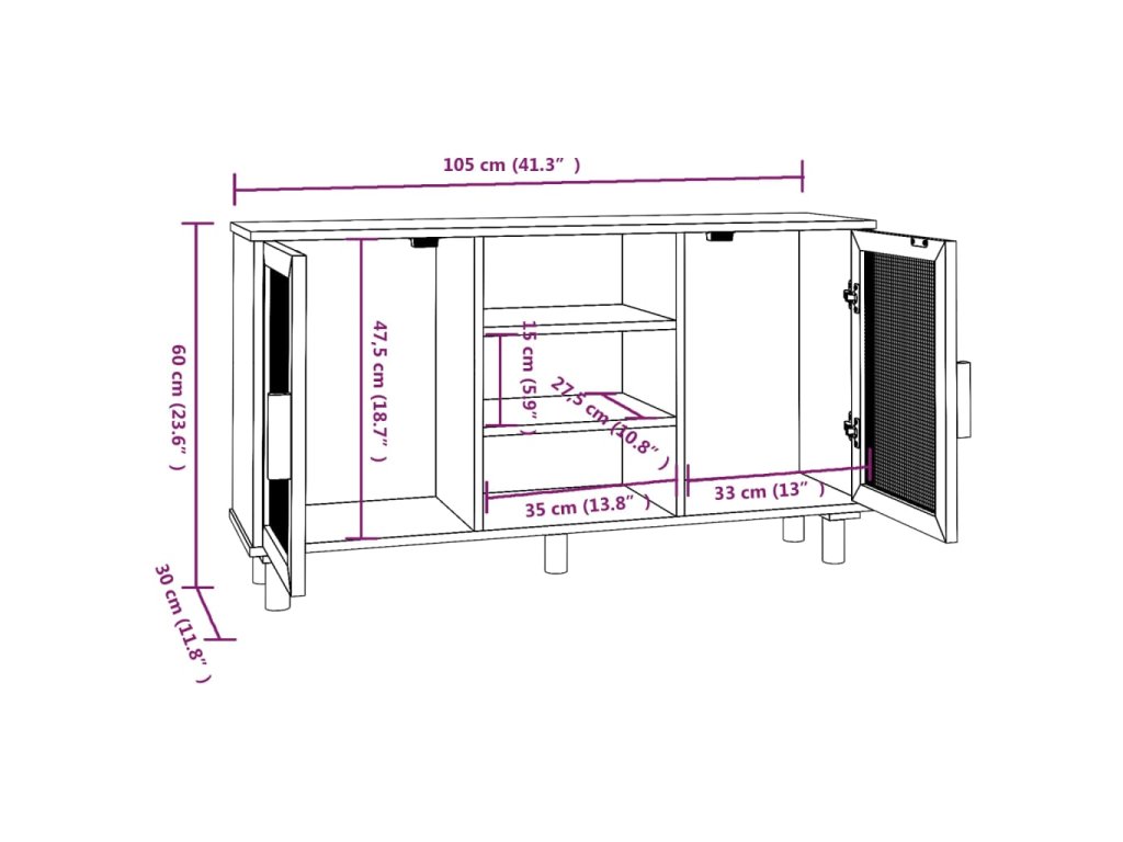 vidaXL Komoda hnedá 105x30x60 cm masívna borovica a prírodný ratan