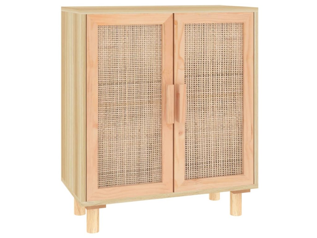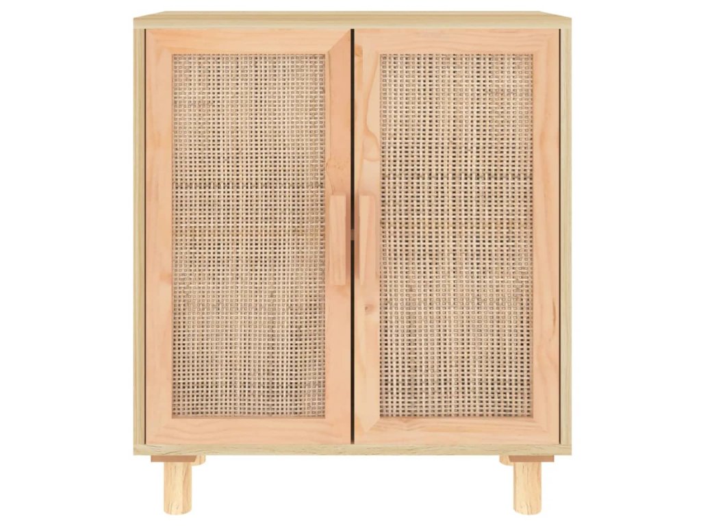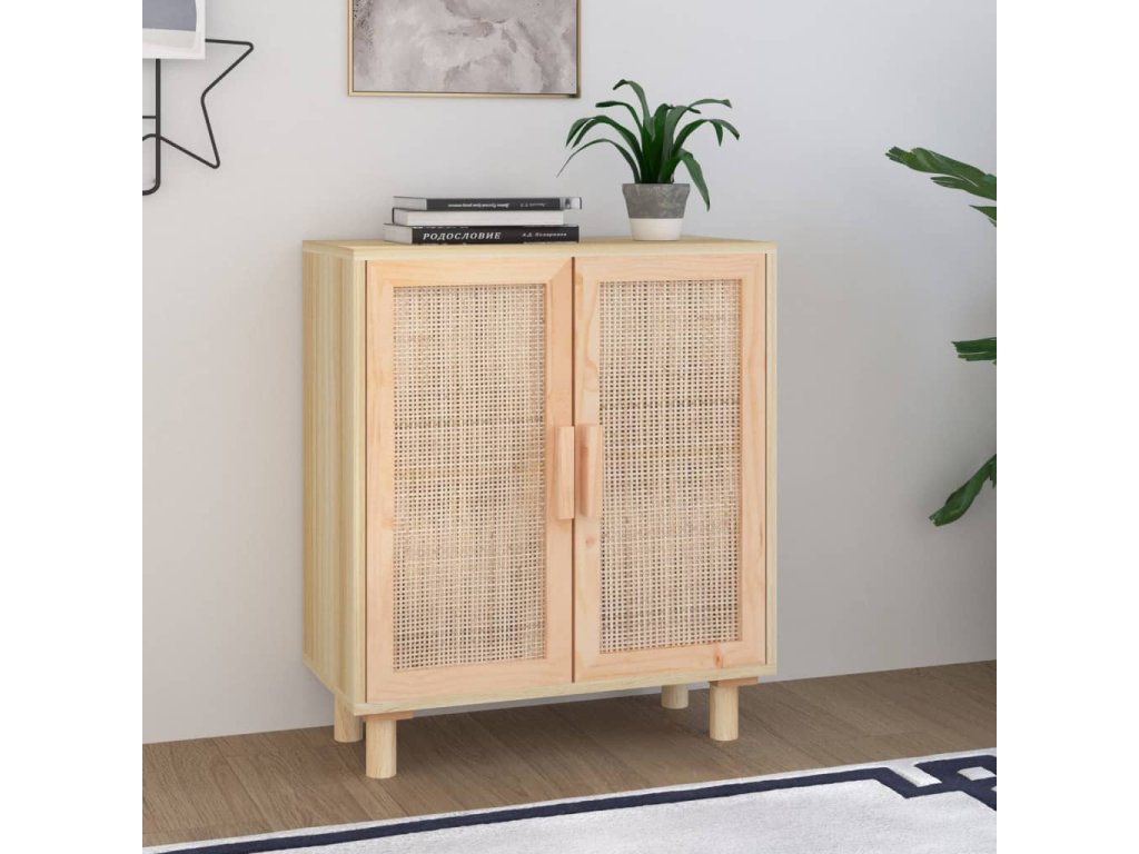 vidaXL Komoda hnedá 60x30x70 cm masívna borovica a prírodný ratan