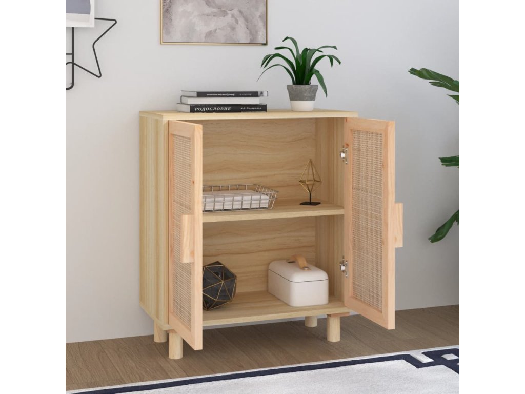 - Dostatok úložného priestoru: Skrinka vybavená 2 priečinkami ponúka dostatok úložného priestoru na uskladnenie rôznych každodenných potrieb dobre organizovaných a na dosah ruky. Navyše dizajn prírodného ratanu dodáva extra krásu.
